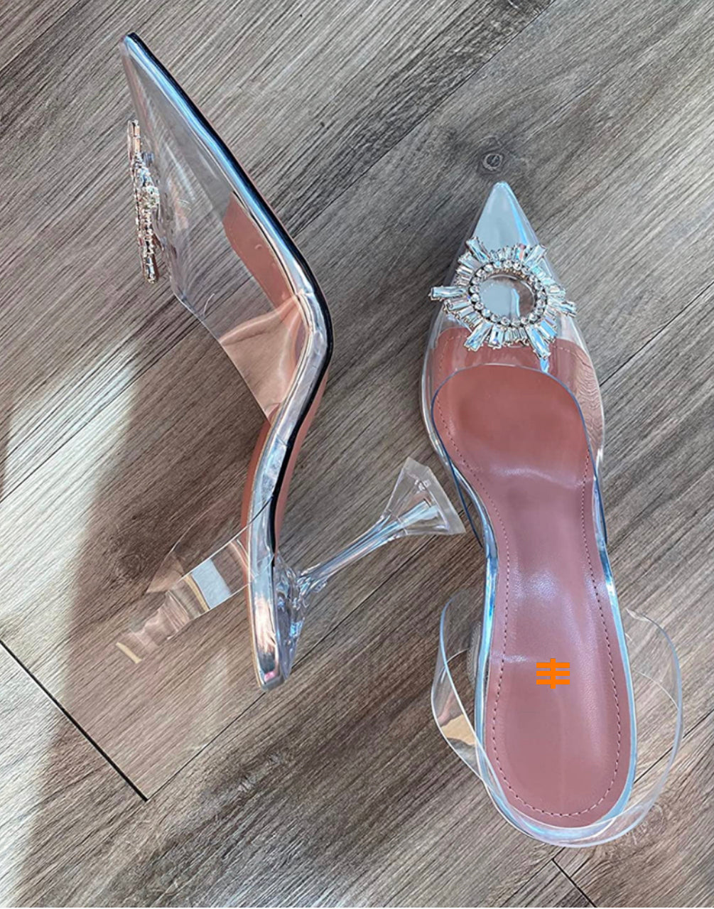 • Crystal High Heeled Sandals With Clear Pvc Upper Create A Concise And Futuristic Feel.
