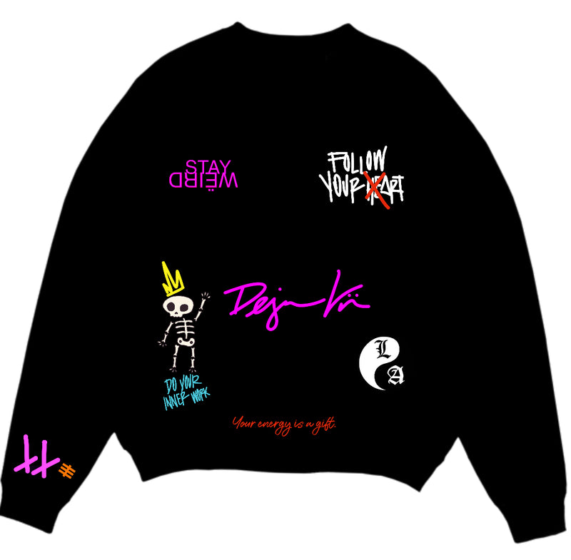 100% Cotton. Double-needle stitching throughout, taped shoulder-to-shoulder & ribbed cuffs with printed design in the front of garment.